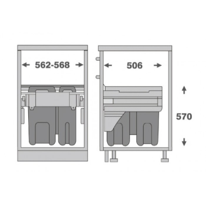 MD60-72GR Double Waste Bins with Soft Closing
